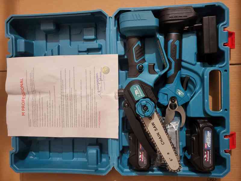 Aku prořezávací pila a nůžky M Professional, Made in Japan. Baterie 2x XGT profi série s vysokým výkonem a výdrží 40V 5Ah,nabíječka. Vše úplně nové nepoužité s dlouhou životností. Rok výroby 2025.
