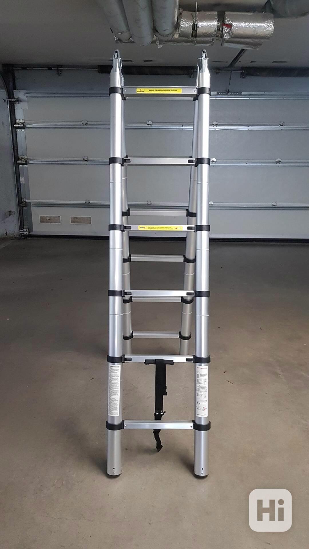 Teleskopický žebřík / štafle ze dvou dílů vhodný pro profesionální i domácí použití. Možnost použití jako štafle nebo opěrný žebřík. Je vyroben z lehké, ale vysoce kvalitní hliníkové slitiny. Bezpečný a spolehlivý, mezi příčkami je zajištěno nastavení, které zabrání zachycení prstů při vysouvání a zasouvání. Pogumovaný protiskluzový krok a pás tlumící nárazy mezi příčkami umožňuje bezproblémové použití. Výšku lze libovolně nastavit dle potřeby, automatické zajištění při každém posunu zajišťuje bezpečné používání. Po složení do základního stavu zabere minimálně místa při skladování nebo stejně tak i při přepravě.